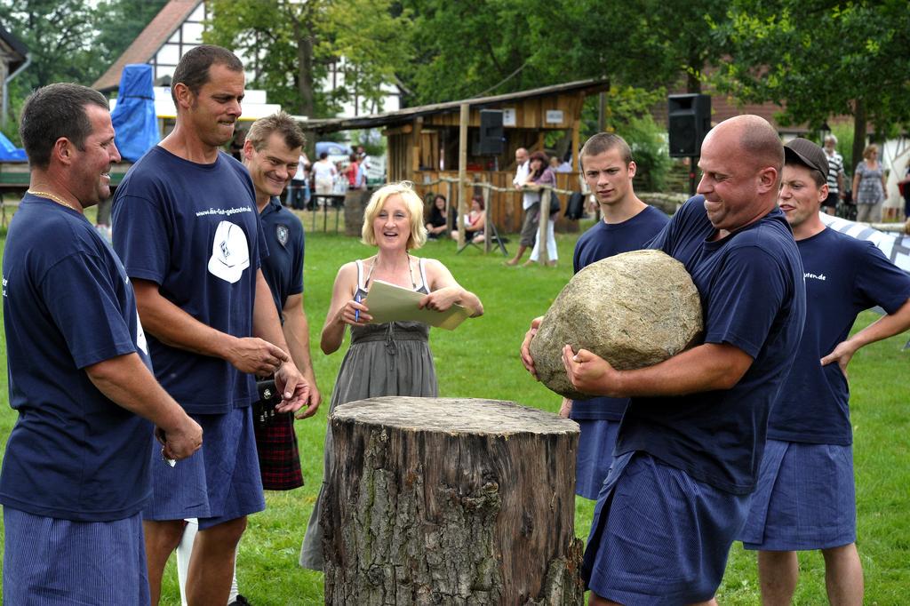 stehen bereit. Jedes Clanmitglied hat drei Versuche. Der schwerste Stein wird gewertet.